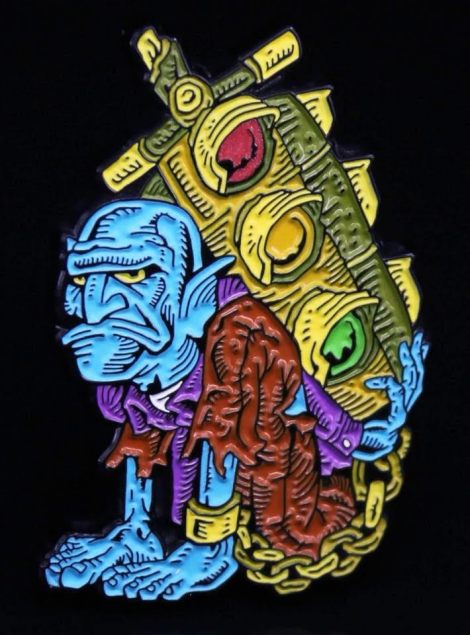 The pins that DiFabbio creates can be said to be a good visual representation of the music of Phish. Both have this immediate improvisational feel to them that, upon further examination, reveals a precision in the meshing together of many different pieces. The wide variety of color DiFabbio uses to make his pins can only exist in such harmony if they are carefully crafted in the design process. This is even more remarkable and unique given that DiFabbio puts so much color onto such a small surface area, all while maintaining continuity throughout the entirety of the pin. In the Critique of Judgement, Immanuel Kant, speaking on the determination of agreeability, states: “That is agreeable which the senses find pleasing in sensation” (Section 3). There is something about DiFabbio’s pins that draw in the senses. The pins are loud and eye popping. They draw an immediate reaction, just as the music of Phish often does.