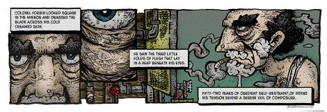 It wasn’t a necessarily a conscious effort if that is the perception I give. I’m an 80’s kid so I absorbed lots of gore, comics, and television. I would set out to make things as gory as possible and folks would want to tell me about how trippy it was. I can appreciate that.